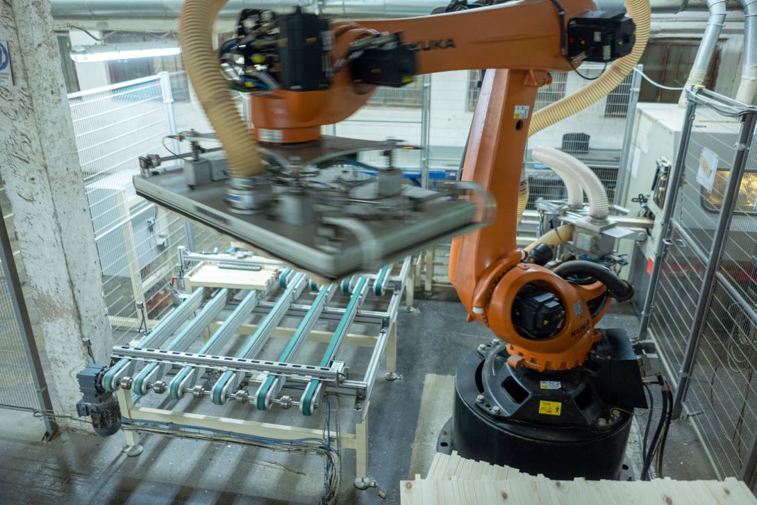 Techvitas Robotika automatizuoto paletizavimo sprendimo dėka įvairaus dydžio medinių lentų paletavimas tampa greitas, našus ir nenutrūkstamas.  Sistema suprogramuota taip, kad būtų galima apdoroti įvairaus dydžio medines lentas. Šis automatizuotas sprendimas lengvai pritaikomas naujiems produktams.